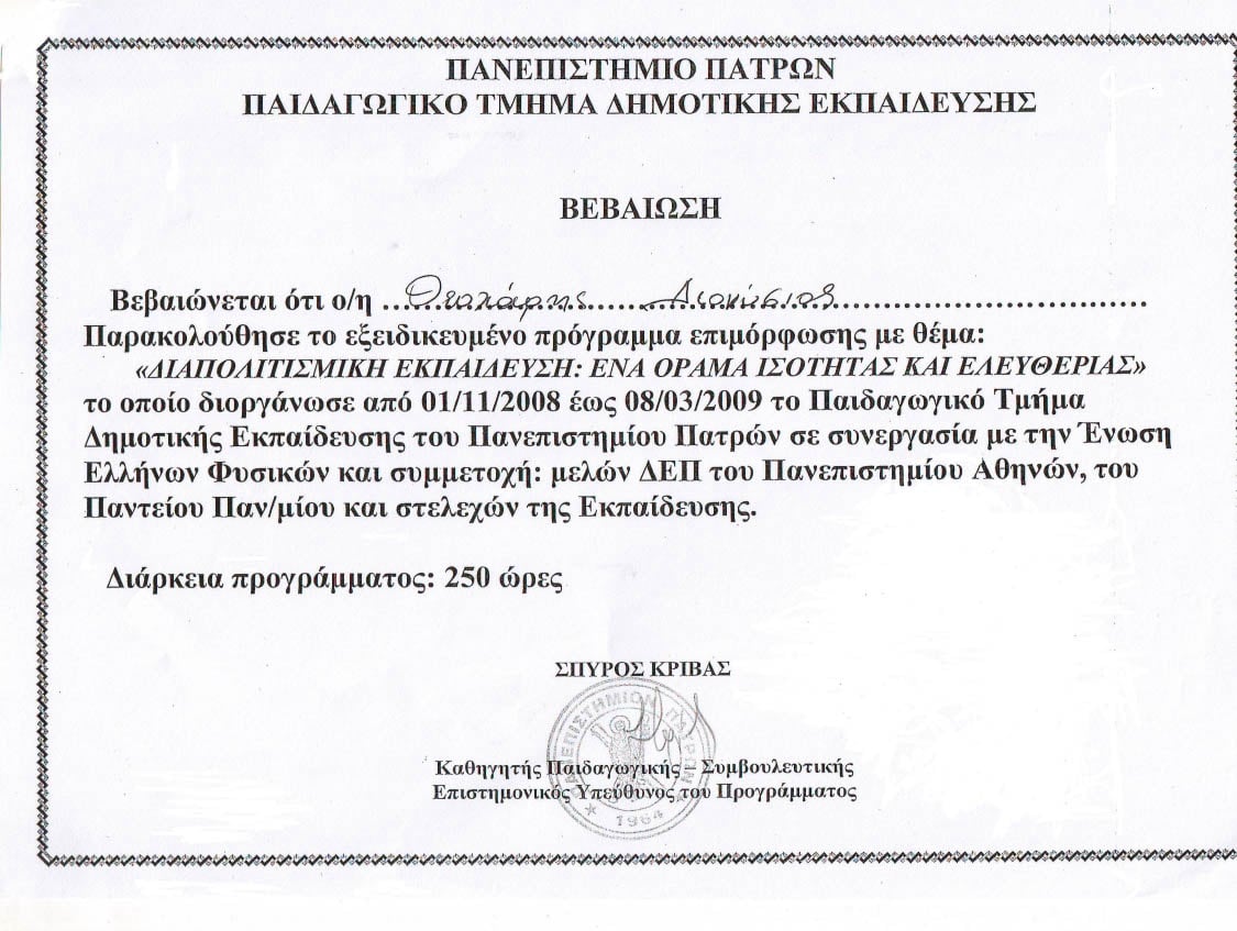 Τέλος, είμαι υποψήφιος διδάκτορας στην διδακτική της φυσικής με την βοήθεια νέων τεχνολογιών.